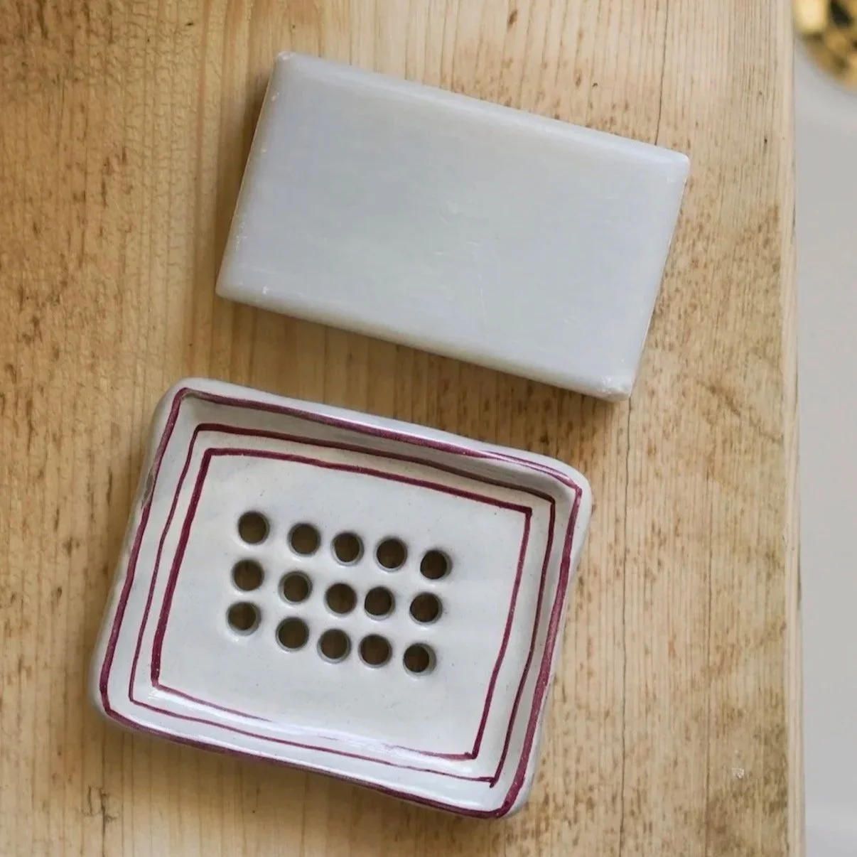 Red Stripe Stoneware Soap Dish