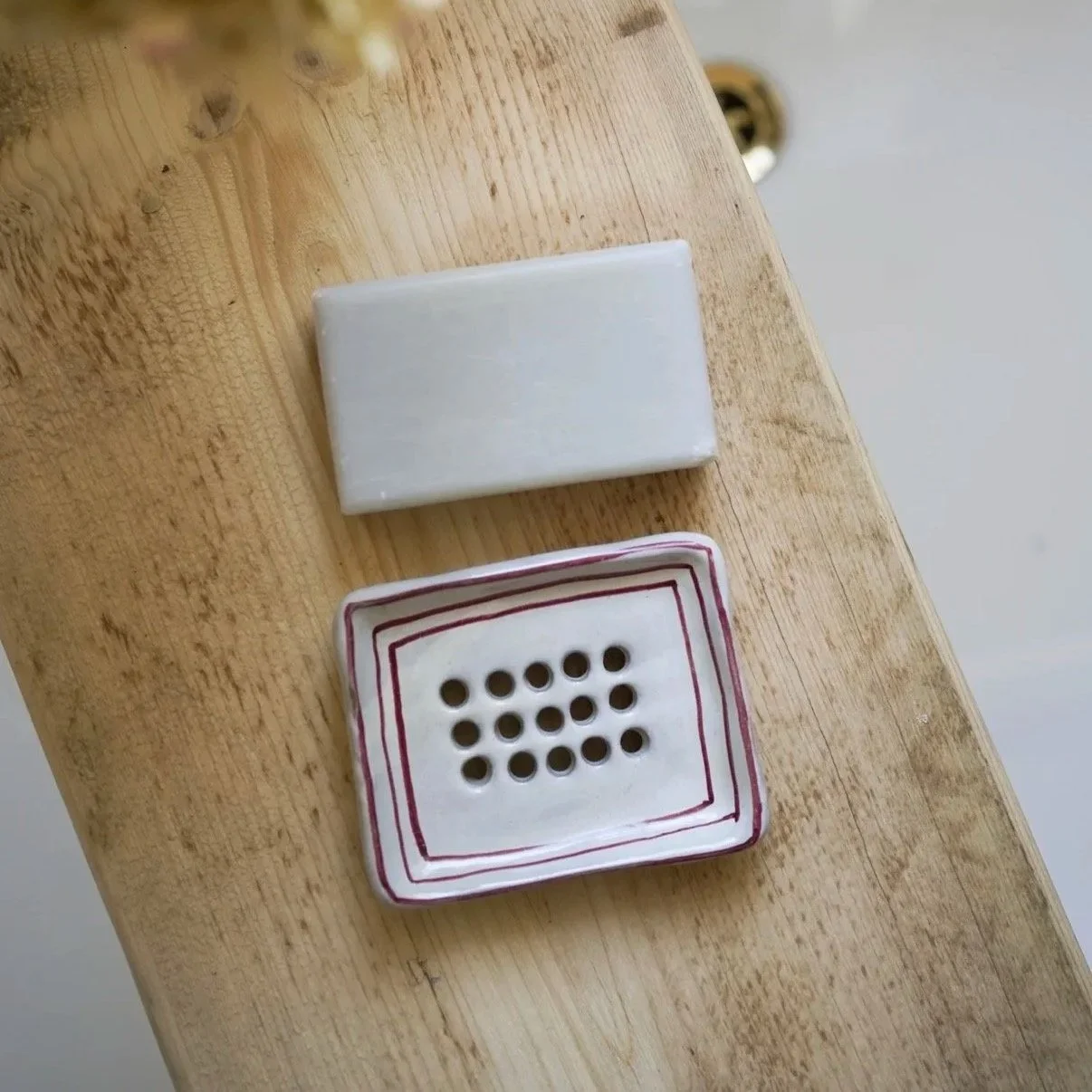 Hand Painted Red Stripe Stoneware Soap Dish